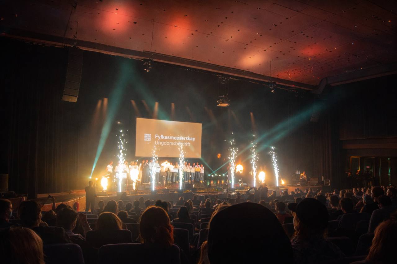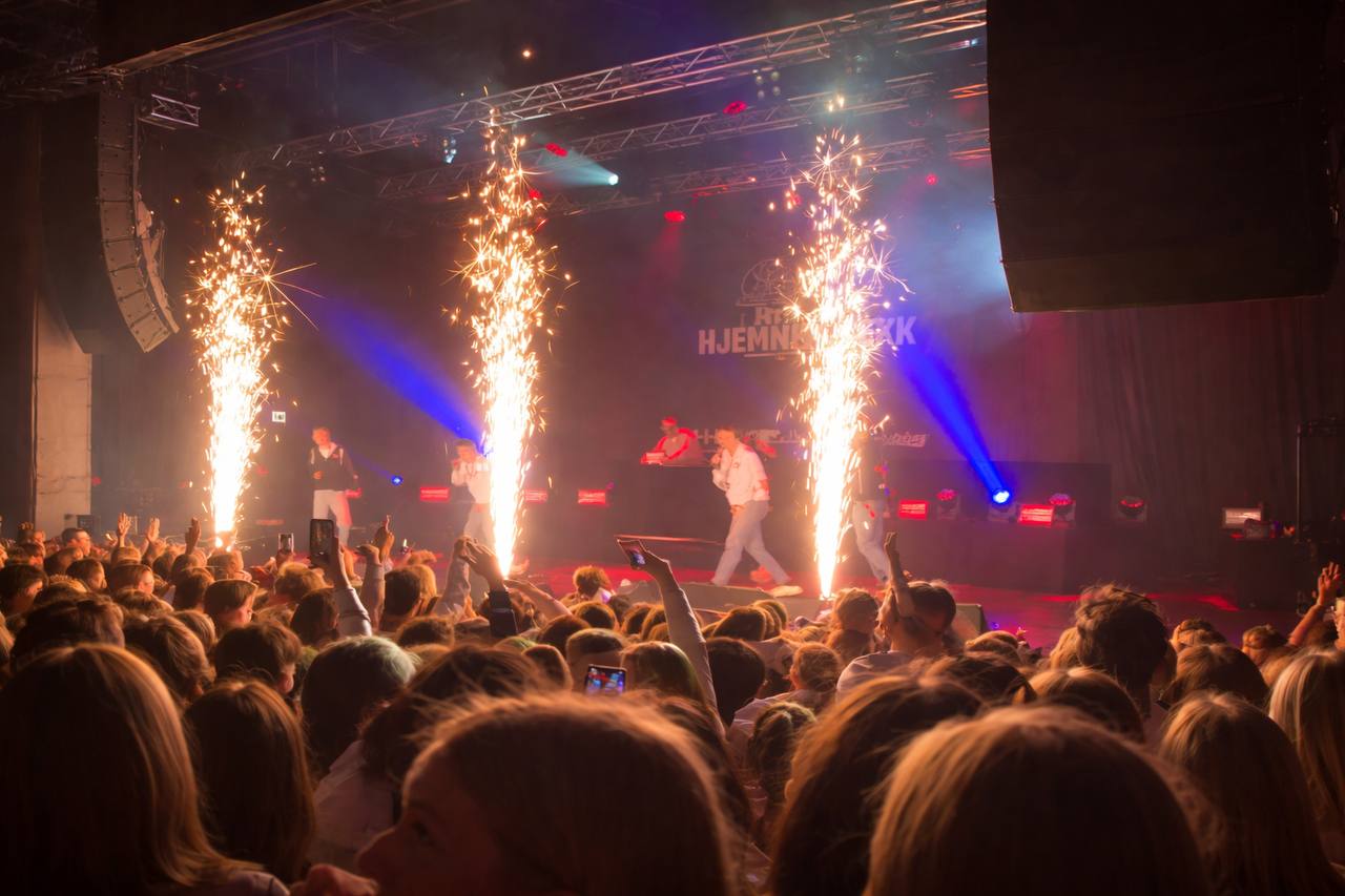 Som du ser her funker gnistmaskinene våre helt knall, både ute og inne. Selv i dagslys blir effekten kjempebra. Dette er fra en countryfest i midtsommer.