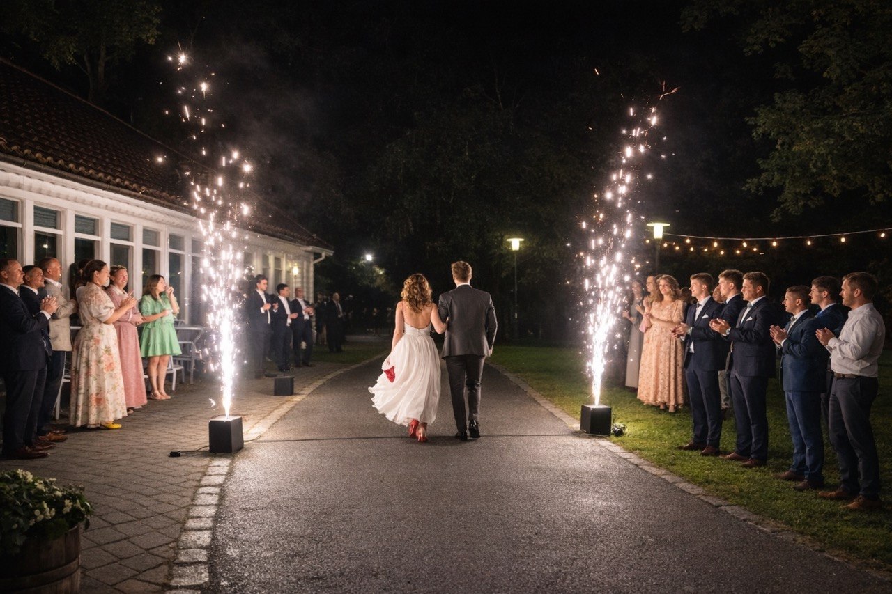 Gnistmaskiner er virkelig prikken over i en på ethvert arrangement. Effekten er like spektakulær som tradisjonell pyroteknikk, men helt uten brannfare.