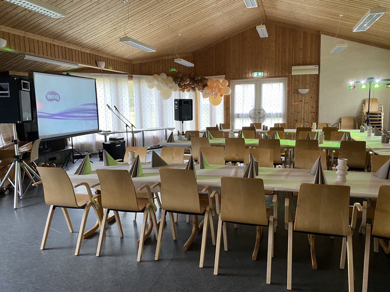 - 2 høyttalertopper – Perfekt for mindre arrangementer med rom for bord og dans.